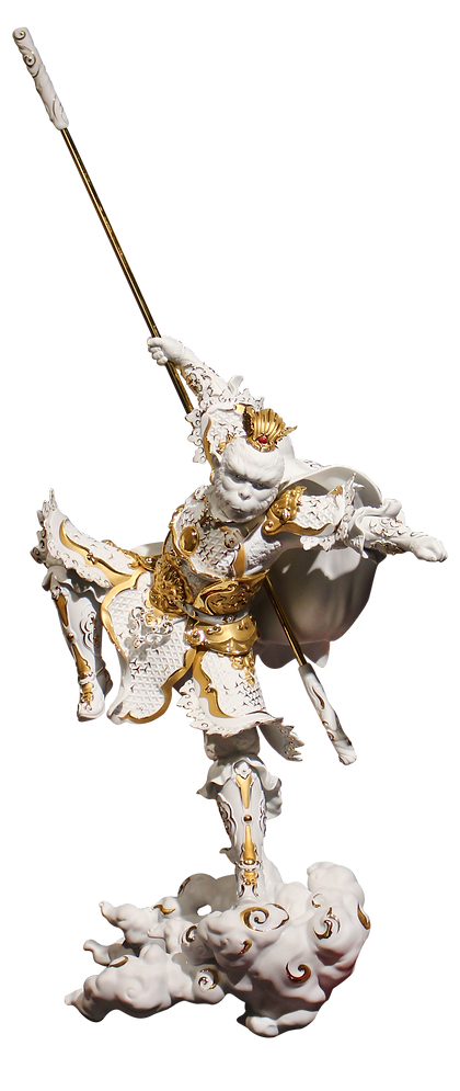 ㄧ件好的作品需要時間的淬練以及繁雜的工序,一開始要製作齊天大聖時,先用油土塑形,因為硬油土的特性需要不斷加熱才具可塑性,在這個過程就需要相當多的經驗及耐心,才能刻劃出一個土胚原型。